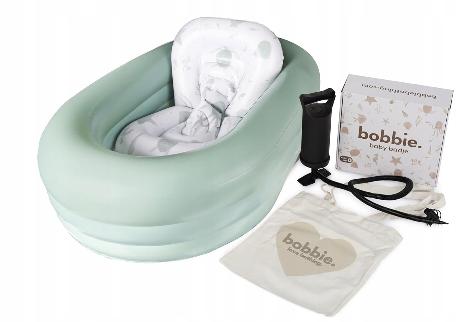 Детская ванночка Bobbie, упакованная в транспортировочную сумку и оснащенная насосом, является практичным и оригинальным подарком на детский душ, крещение или рождение ребенка.