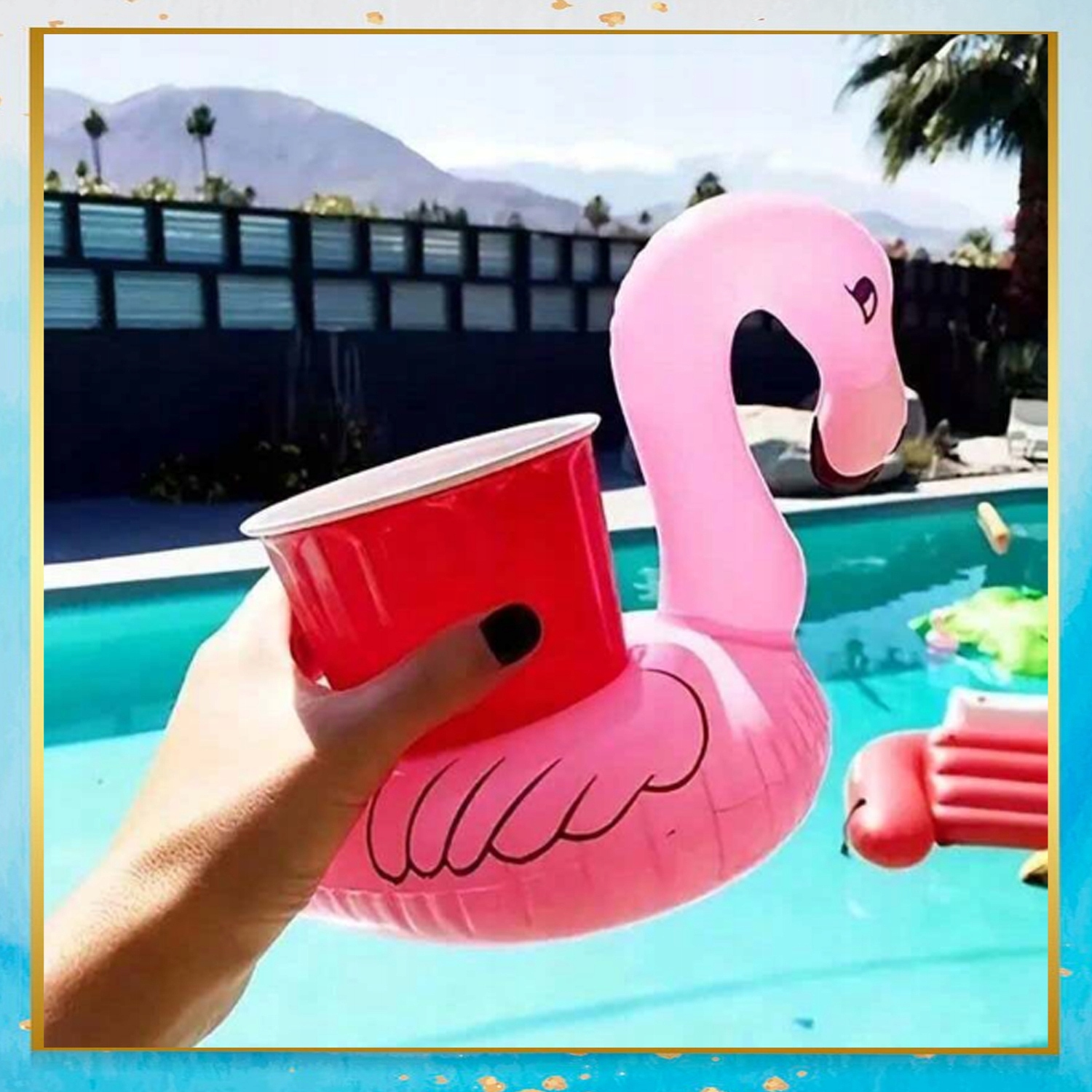 Надувной держатель для напитков Подставка под кружку Фламинго для напитков Вода розовая