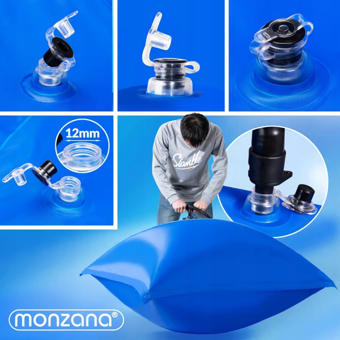 Встроенный предохранительный клапан позволяет надувать подушки с помощью любого ручного или электрического насоса.