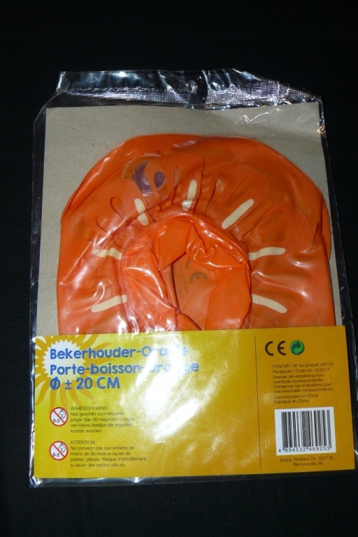 Надувная оранжевая подставка для напитков. В него можно поместить стандартную банку или стакан освежающего сока или напитка. Незаменимый гаджет при плавании в бассейне, а также дома, так как предотвращает опрокидывание стакана или банки с напитком. Также может быть подставкой для детских безделушек во время купания в ванне.
