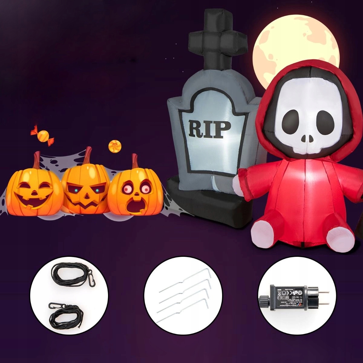 Вы ищете уникальное украшение для вечеринки в честь Хэллоуина? Наше надувное привидение с надгробием, несомненно, станет идеальным выбором. В этом надувном украшении изображено страшное привидение с косой и надгробием, которое погружает вас и вашу семью в фантастическую рождественскую атмосферу. Кроме того, светодиодные светильники привлекают детей, гостей и соседей, и вы получите множество комплиментов. Водонепроницаемая полиэфирная ткань с высококачественными швами прослужит долго, а опоры придадут дополнительную устойчивость. После дефекации его хранят в углу в ожидании следующего Хэллоуина. Купите и наслаждайтесь чудесной вечеринкой в честь Хэллоуина!