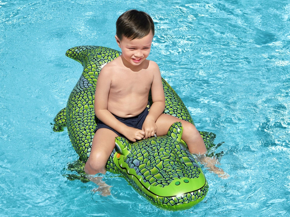 - Надувная игрушка для плавания «Крокодил» зеленого цвета — отличное предложение от Bestway в этом сезоне.
