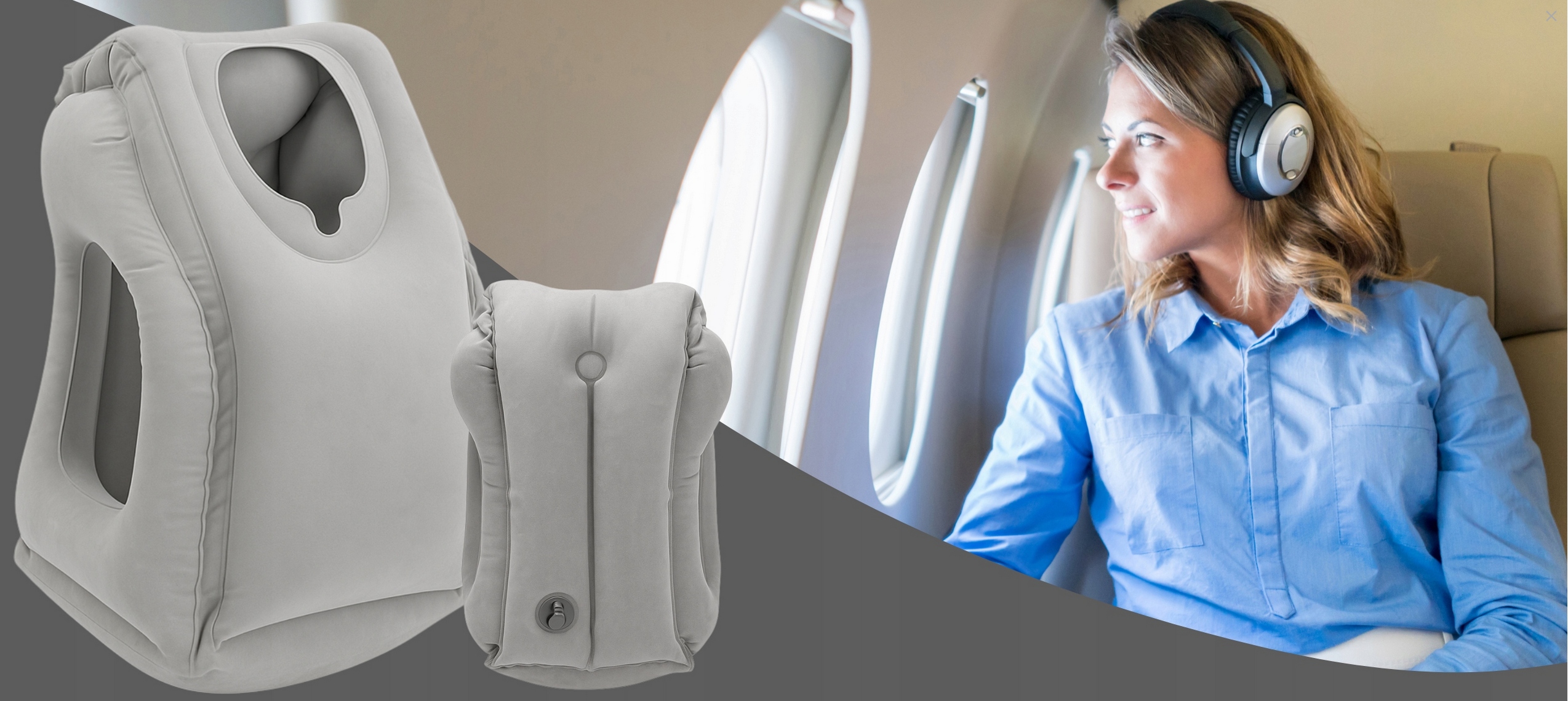 Надувной и легкий как перышко – в сложенном виде он помещается в карман рюкзака или сумочки, а когда он вам понадобится, достаточно всего нескольких вдохов, чтобы он стал удобной опорой для шеи.