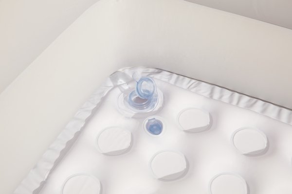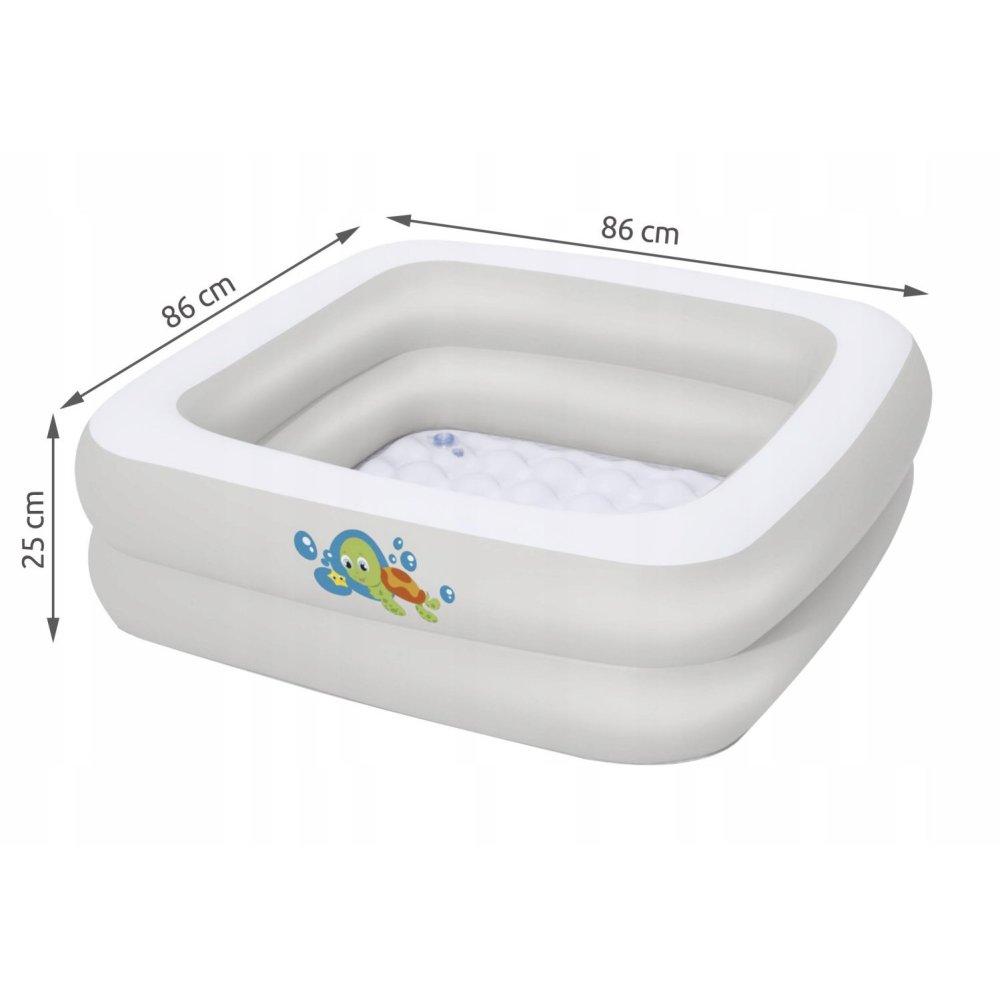 Небольшой вес и размер позволяют брать ванну с собой в любую поездку. Это идеальное решение для тех, кто путешествует с маленькими детьми. Он легкий, практичный, безопасный и удобный в использовании. Он изготовлен из прочного винилового материала. Мягкий надувной пол обеспечивает дополнительный комфорт и удобство во время использования и предотвращает бесконтрольное скольжение ребенка. Ванна состоит из двух отдельно надувных колец. Каждое кольцо имеет предохранительный клапан, предотвращающий утечку воздуха. Ванна предназначена для детей от 0 до 3 лет.