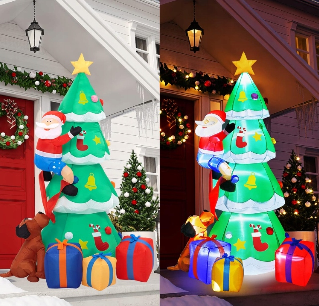 [В комплект входит] Надувное рождественское украшение включает в себя 1 рождественскую елку, 5 колышков, 2 веревки, 2 грузовых мешка. Все это облегчает эксплуатацию и обеспечивает устойчивость.