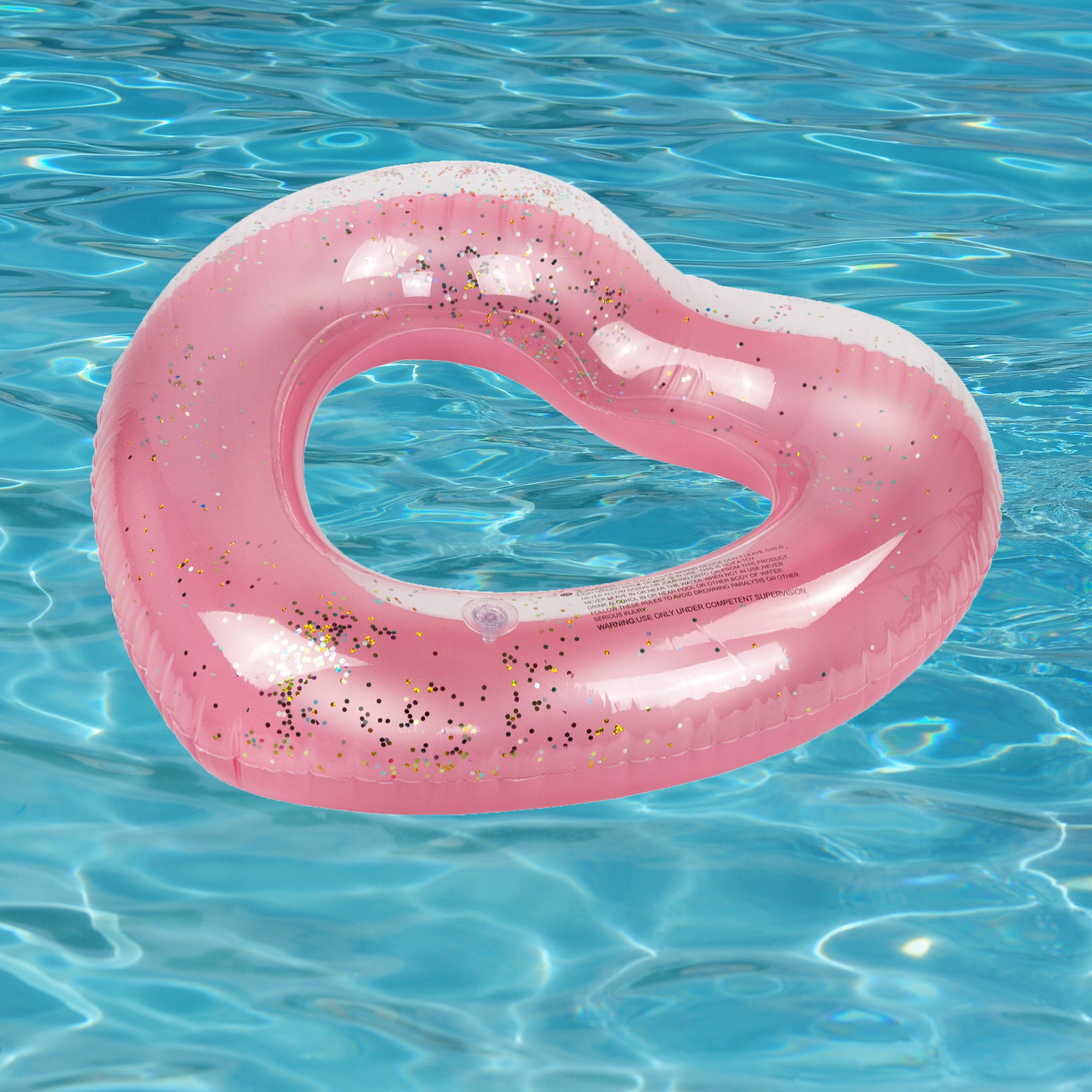 НАДУВНЕ КІЛЬЦЕ ДЛЯ ПЛАВАННЯ СЕРДЕЦЕ РОЖЕВЕ З БЛИСКІТКАМИ