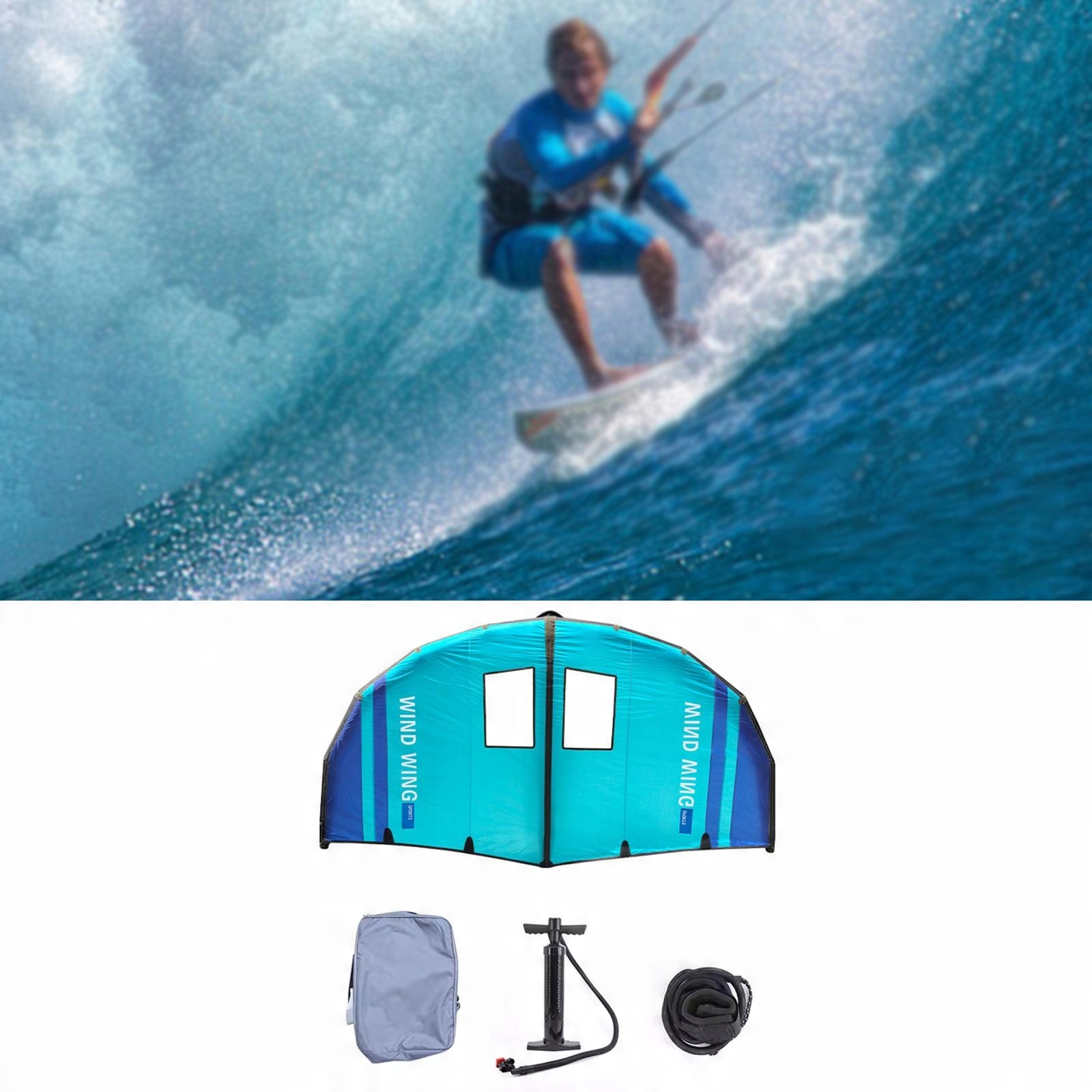 [Содержимое набора]: каждый комплект включает в себя 1 надувное крыло для серфинга размером 340 x 190 см/133,86 x 74,80 дюйма, 1 место для хранения. сумка, 1 насос, 1 веревка.