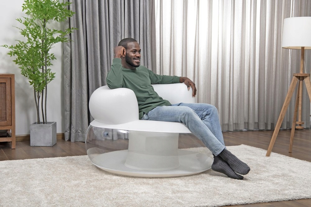 Современный дизайн кресла позволяет быстро надуть его с минимальными усилиями. Компактная форма позволяет разместить его где угодно, что является идеальным решением для людей, ценящих комфорт и гибкость.