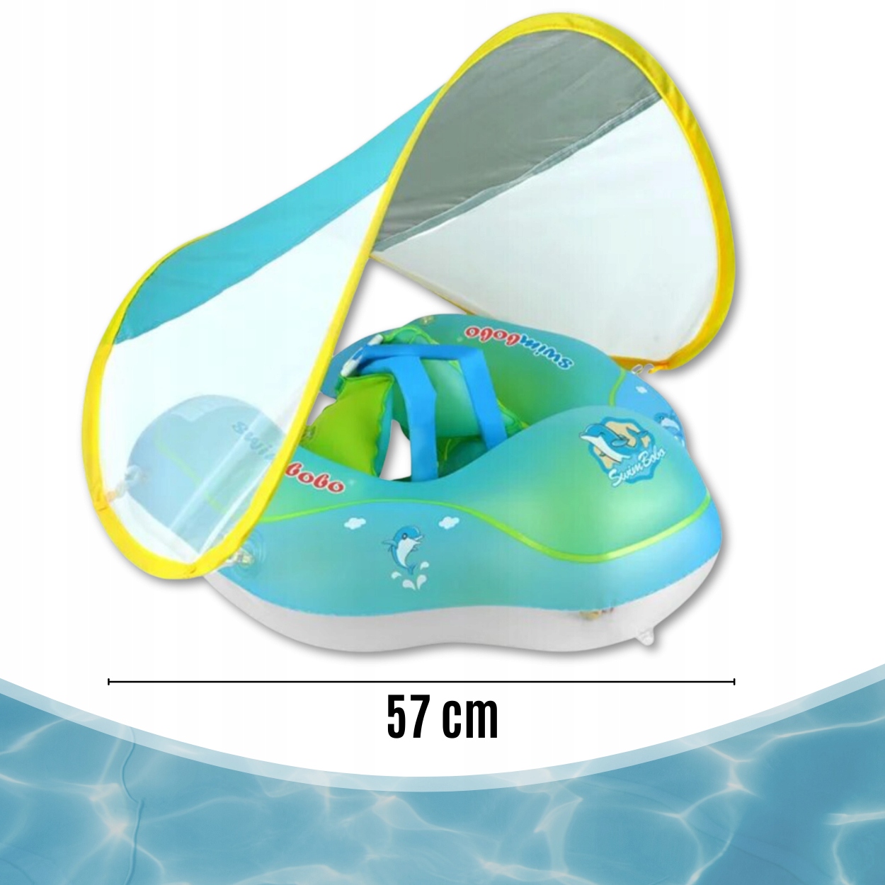 Вам больше не нужно выбирать между безопасностью и хорошим удовольствием - наше плавательное колесо соединяет оба. Благодаря продуманному дизайну, защите от солнца и стабилизации, это идеальный выбор для водных приключений для самых молодых. 🏖