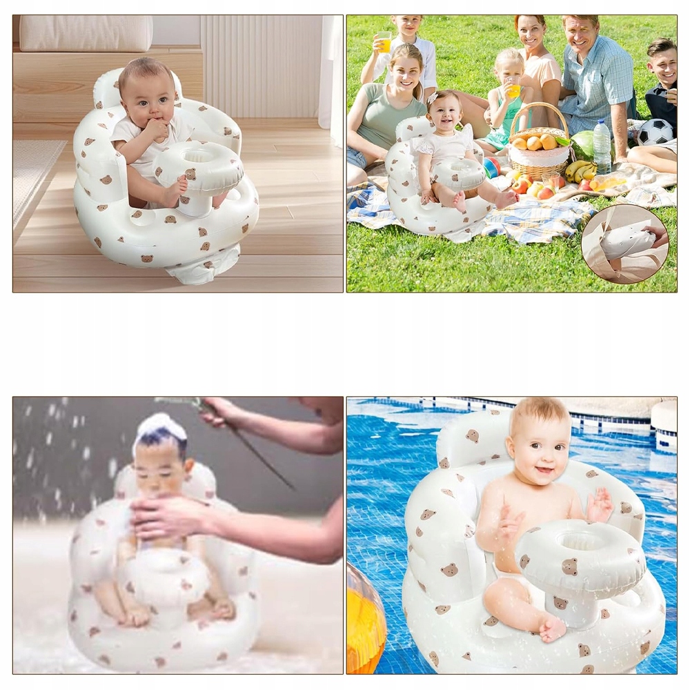 Этот стул подходит для использования на полу дома, кровати, ванной комнаты, травы и т. Д. Надувное сиденье для ребенка идеально подходит для купания, игры и кормления.