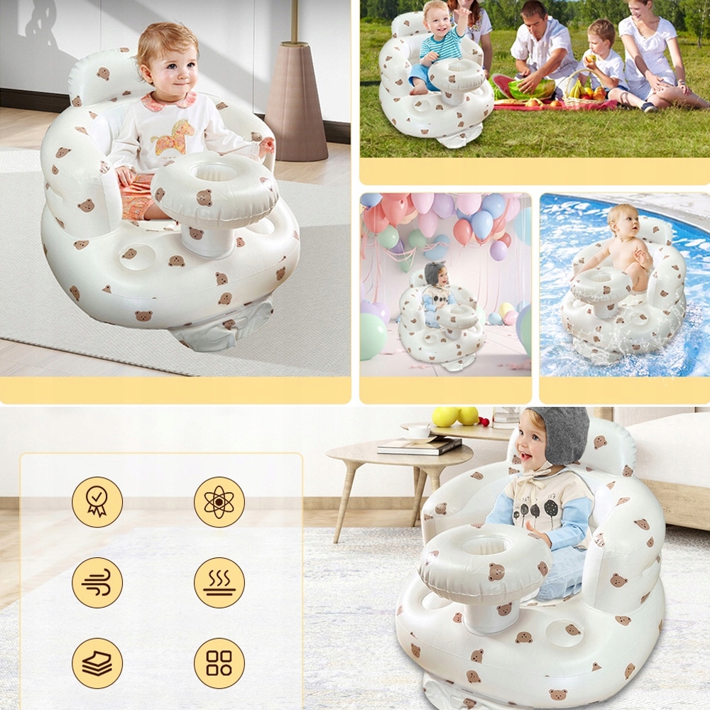 🐻Многофункциональное детское кресло: Это детское кресло можно использовать на полу дома, в кровати, в ванной, на траве и т. д. Надувное детское кресло идеально подходит для купания, игр и кормления.