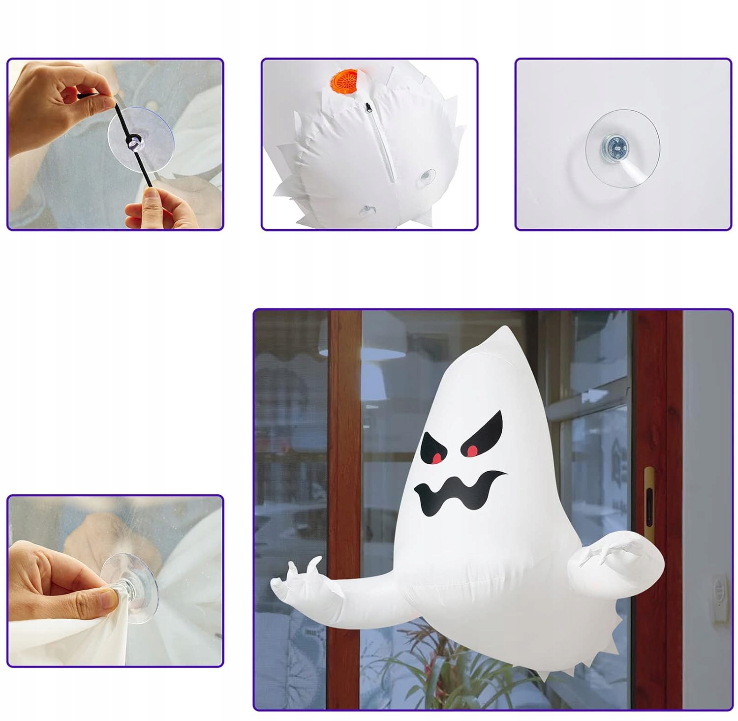 Этот продукт оснащен воздуходувкой, которую можно надуть просто подключив его к источнику питания в короткие сроки. Его можно сложить для удобства хранения и установки. Просто отрегулируйте длину шнура, затяните винты, снимите надувной материал с окна и, наконец, прикрепите его к окну с помощью прилагаемой присоски. Можно использовать для окон, украшений Хэллоуина, домов с привидениями, вечеринок в честь Хэллоуина, домашних украшений, улицы, сада, двора и т. д. Принесите праздничную атмосферу Хэллоуина в свой дом.