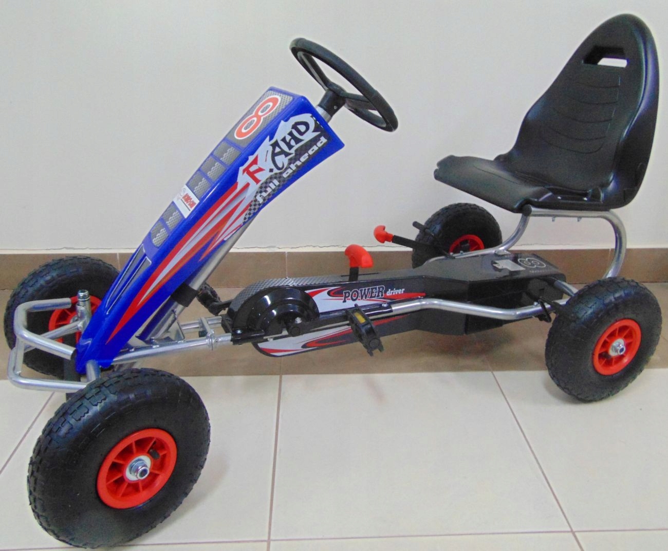 Педальный картинг F8 с надувными колесами и ручным тормозом.