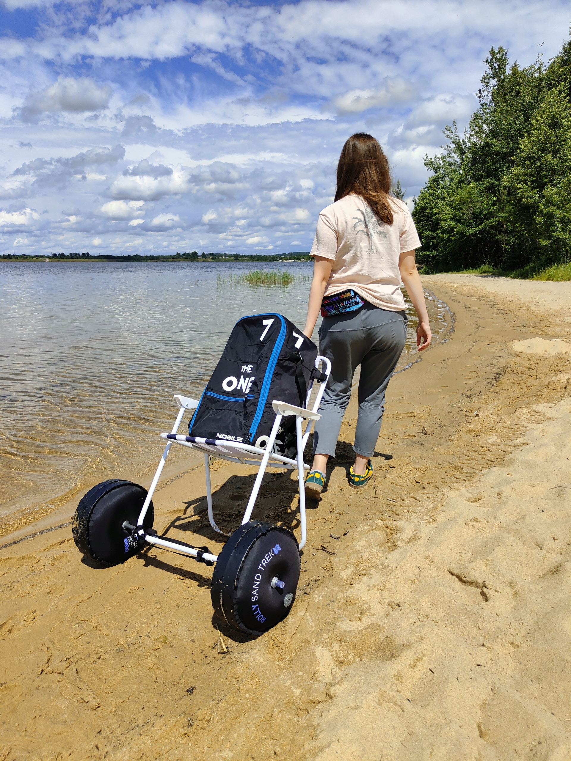 - Удобная мобильность: Благодаря сверхлегкой конструкции и надувным колесам (достаточно трех ударов ртом), Rollysand обеспечивает легкое маневрирование на любой местности - от песчаных пляжей до травянистых парков.