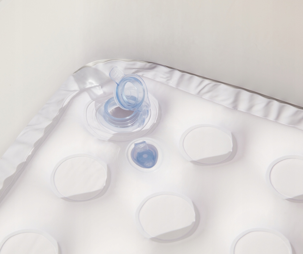 Профилированное надувное дно ванны обеспечивает комфорт в положении сидя или лежа, предотвращает неконтролируемое скольжение, а ребристые бортики гарантируют комфортное сидение в ней.