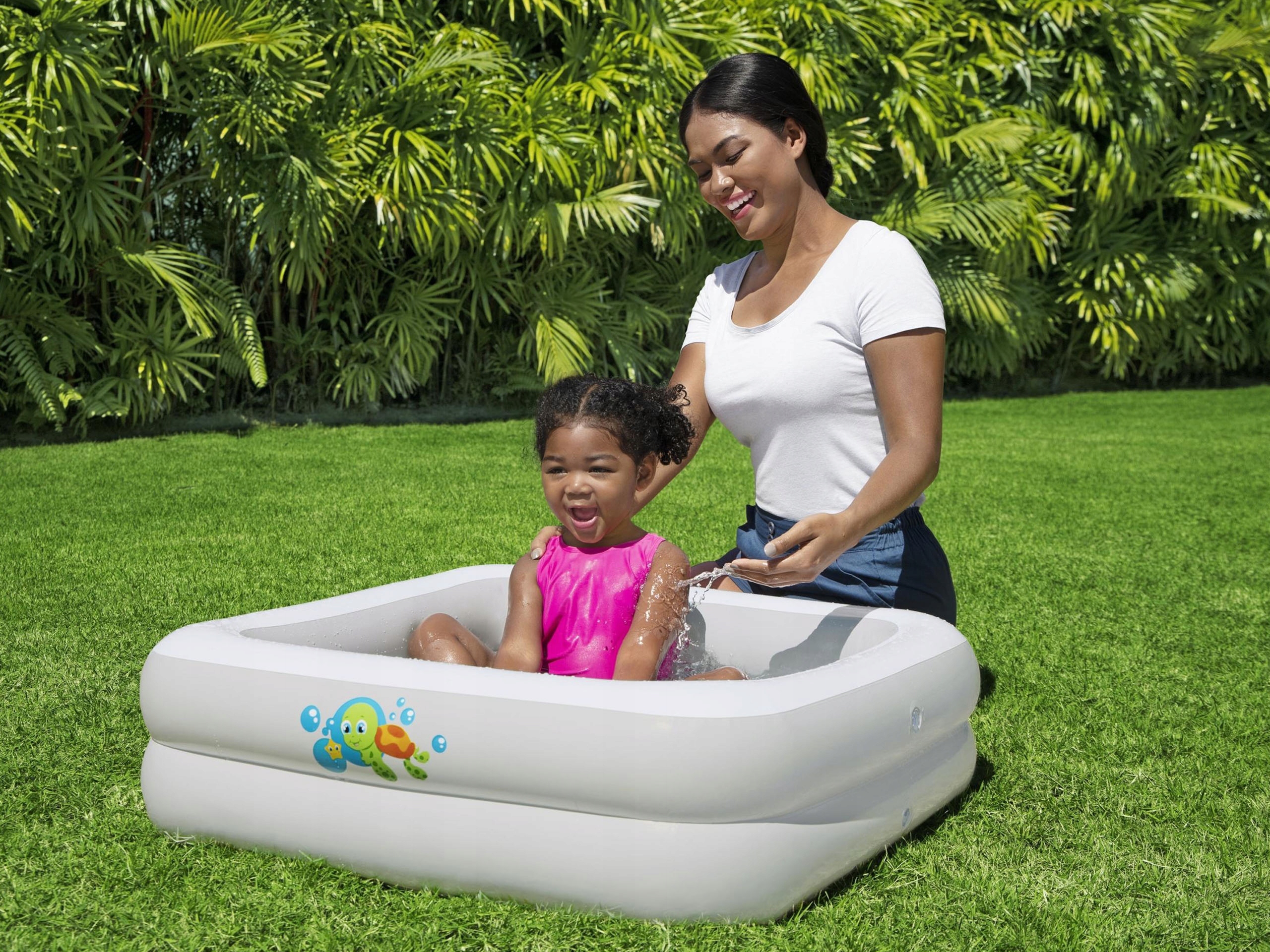 Надувная детская ванночка Bestway будет особенно полезна в домах, где на борту находится новорожденный ребенок или ребенок чуть постарше. Он будет служить ванной или садовым бассейном, но вы также можете использовать его как сухой бассейн/манеж для ребенка немного старшего возраста.