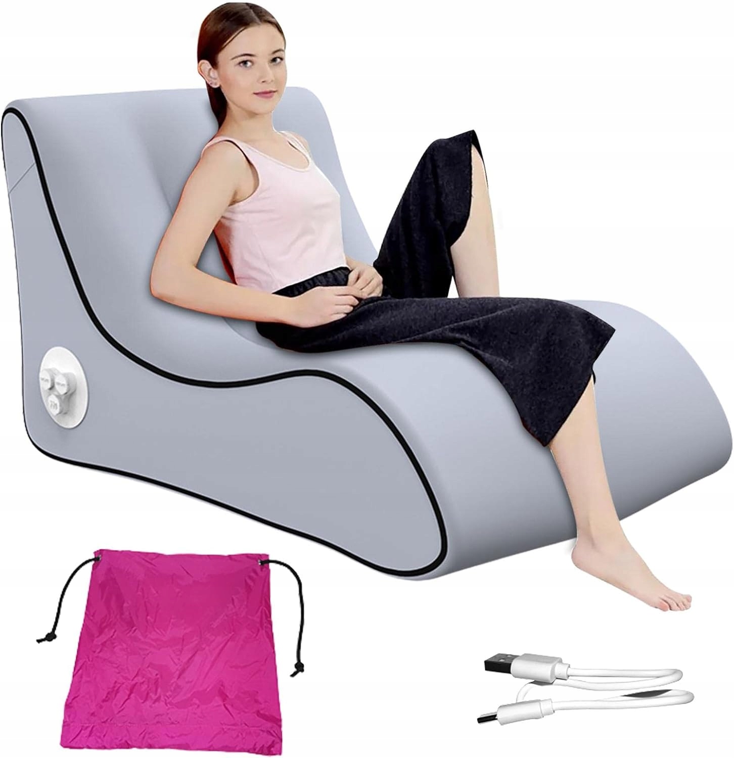 Автоматическое надувное кресло Легкое в хранении и переноске надувное кресло-диван представляет собой самонадувающееся кресло с откидной спинкой и встроенным электрическим воздушным насосом для автоматического надувания. Модернизированное надувное кресло-диван может автоматически надувать шезлонг одним касанием и питается от встроенного аккумулятора емкостью 2600 мАч. Грузоподъемность Надувной походный диван имеет большую грузоподъемность – около 200 кг. Мягкость дивана можно свободно регулировать без ограничений. Наслаждайтесь комфортным сидением Изолируйте влагу и холод от земли, наш надувной игровой шезлонг подарит вам больше комфорта. В надутом состоянии толщина дивана составит около 75 см. Предпочтительный материал Изготовленное из предпочтительного толстого нейлона Ripstop, надувное кресло-диван исключительно прочное. Можно использовать на любой необходимой поверхности.