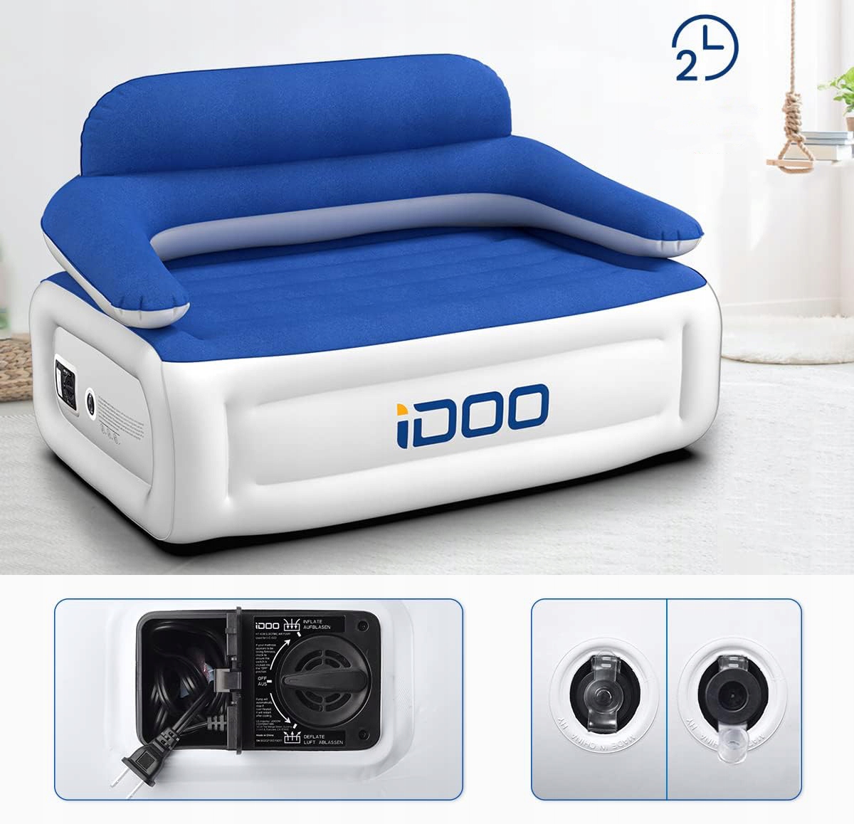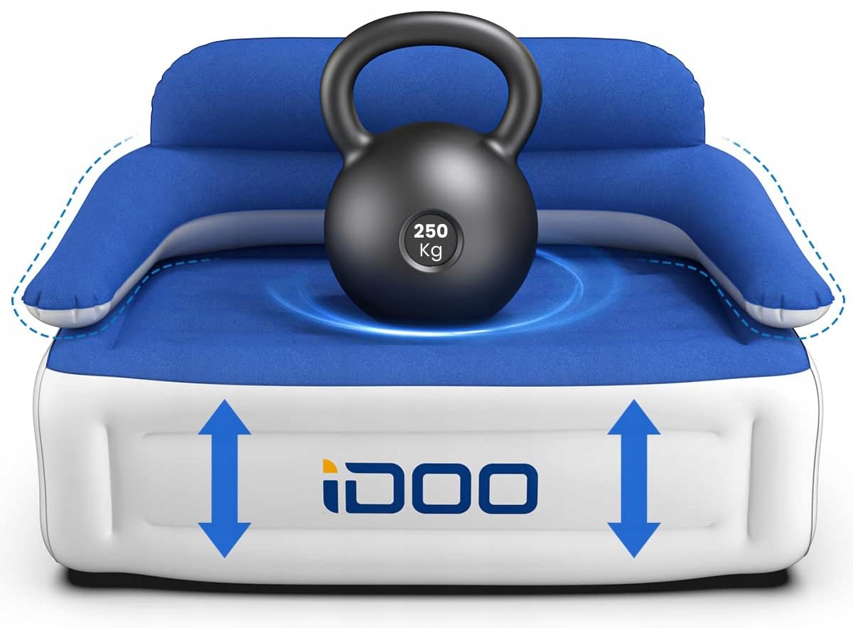 Улучшенная конструкция подлокотников: по сравнению со стандартными надувными диванами, особой особенностью дивана IDOO является широкая поддержка и подлокотники, которые обеспечивают поддержку шеи, спины и рук, гарантируя максимальный комфорт сидения