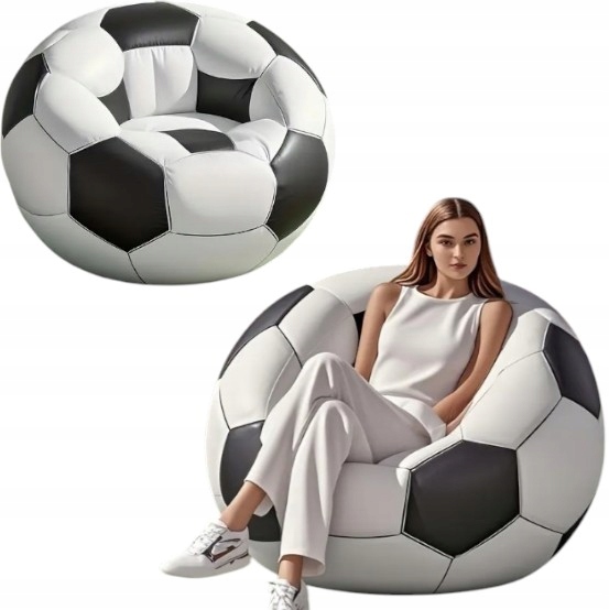 Кресло в форме футбольного мяча изготовлено из прочного ПВХ-материала, что обеспечивает его долговечность и прочность.