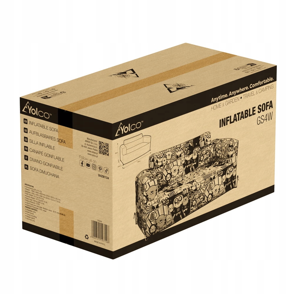 Надувной, красочный и, прежде всего, чрезвычайно удобный и прочный диван Yolco GS4W. Диван можно с успехом использовать дома, в саду, на даче, террасе или в кемпинге. Надувной диван Yolco GS4W отличается уникальным мультяшным принтом, который придает ему оригинальный и забавный вид. Высококачественные материалы, из которых он изготовлен, обеспечивают долговечность и комфорт использования. Благодаря компактной конструкции дивана в спущенном состоянии он занимает очень мало места, что делает его идеальным спутником в путешествии.