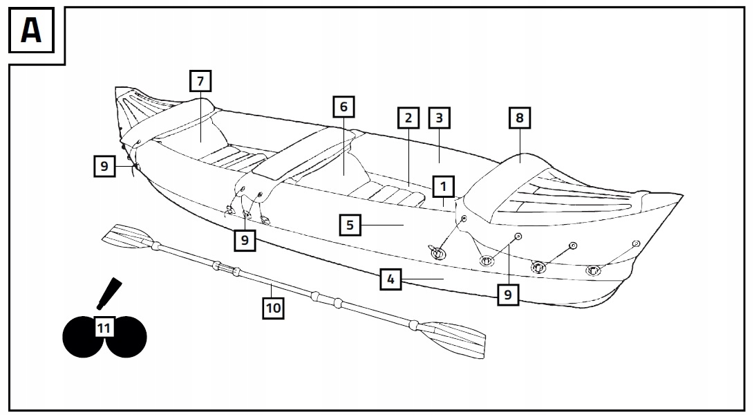 Мы рекомендуем двухходовой насос, предназначенный для накачивания каяков, палаток, воздушных змеев или досок для серфинга. Желательно со встроенным манометром, так как производитель рекомендует заполнять каяк воздухом под давлением 0,035 бар или 0,51 psi.