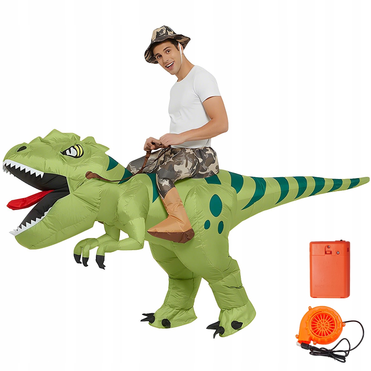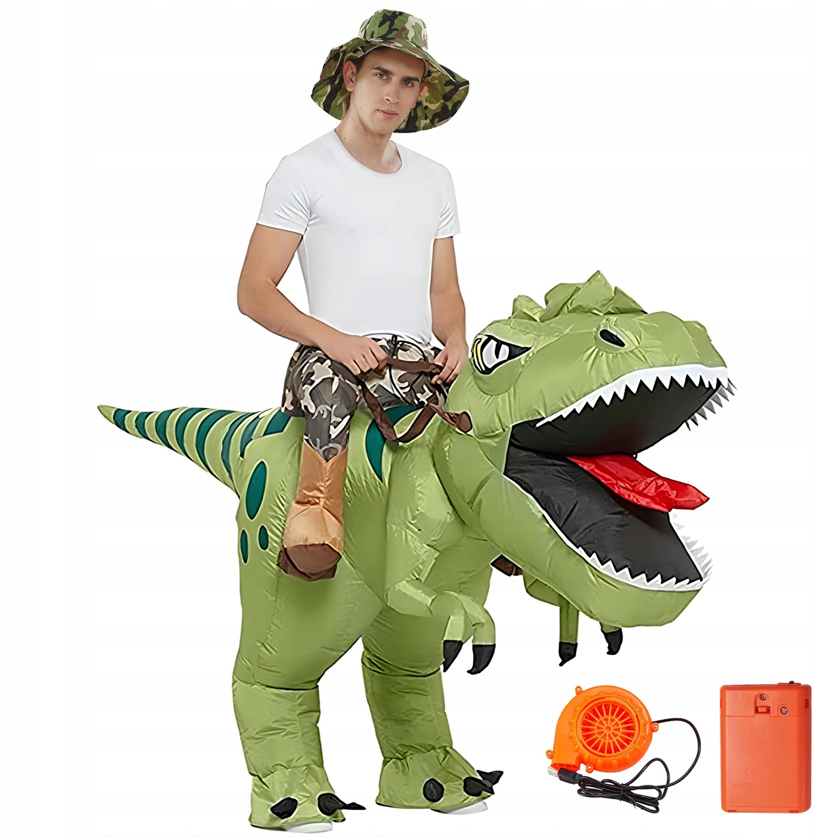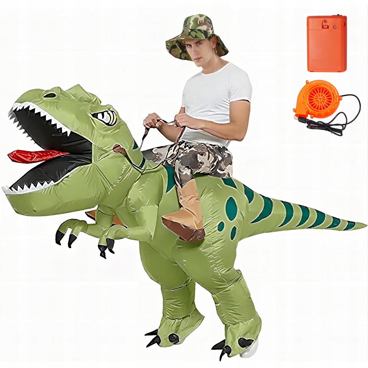 ⚡ Автоматическое надувание ✅ - встроенный вентилятор наполнит костюм воздухом за 1-3 минуты - наденьте и сразу сможете играть за наездника-динозавра!