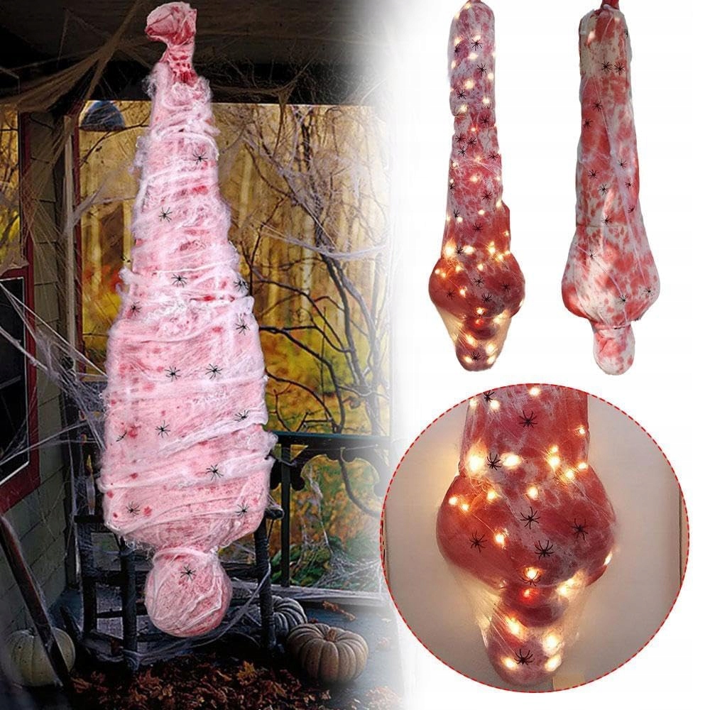 🕷️ Реалистичный и устрашающий дизайн - длина 150 см, поверхность покрыта пятнами крови, паутиной, пауками и светодиодной гирляндой, что усиливает устрашающий эффект в ночное время.