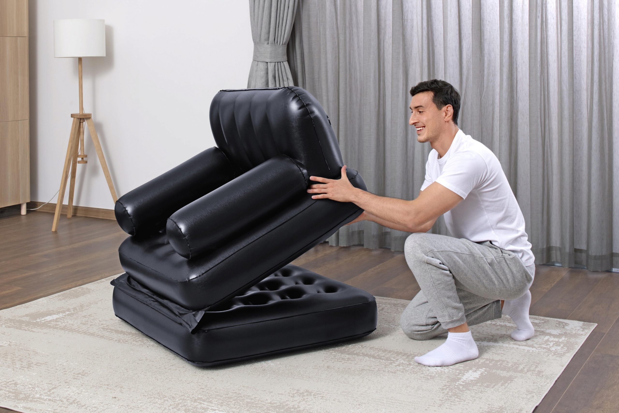 ✅ Бестс 75114 -это надувное 4 -in -1 кресла, b>, которое может действовать как кресло, диван, односпальная кровать и SOFA. Идеально как дополнительное место для сна для гостей или мебели для отдыха.