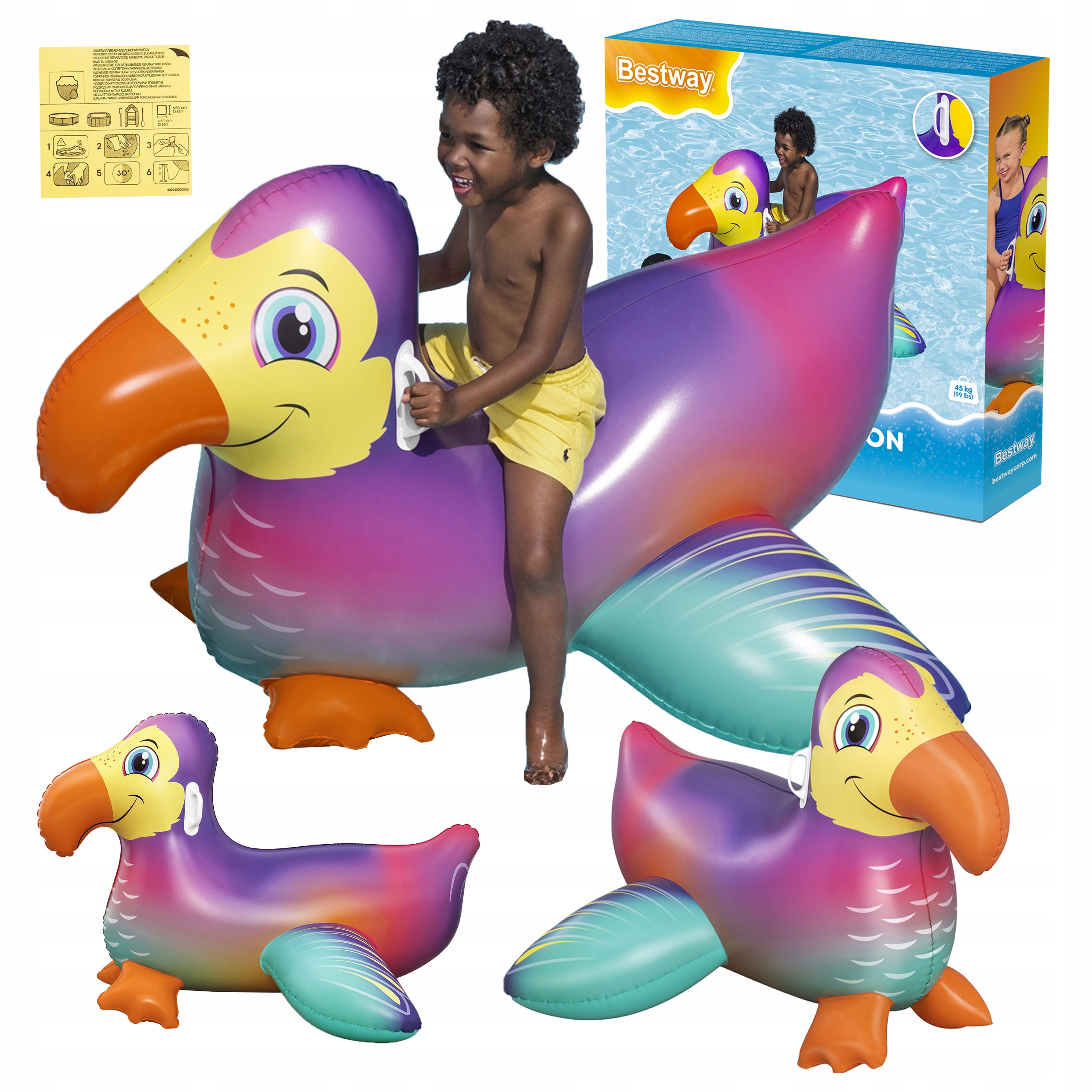 Знакомьтесь, красочный тукан Bestway Денди Додо — идеальный компаньон для праздничного веселья в бассейне и на море! Легкий, удобный и легко брать с собой куда угодно – это хит каждого лета!