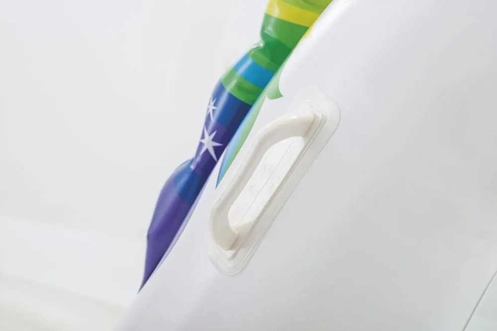 Надувной матрас в красивой форме радужного единорога привлечет внимание каждого любителя пляжного отдыха. Этот оригинальный матрас – предложение для всех, кто любит отдыхать в воде и на пляже. На поверхности единорога легко поместятся двое взрослых особей.