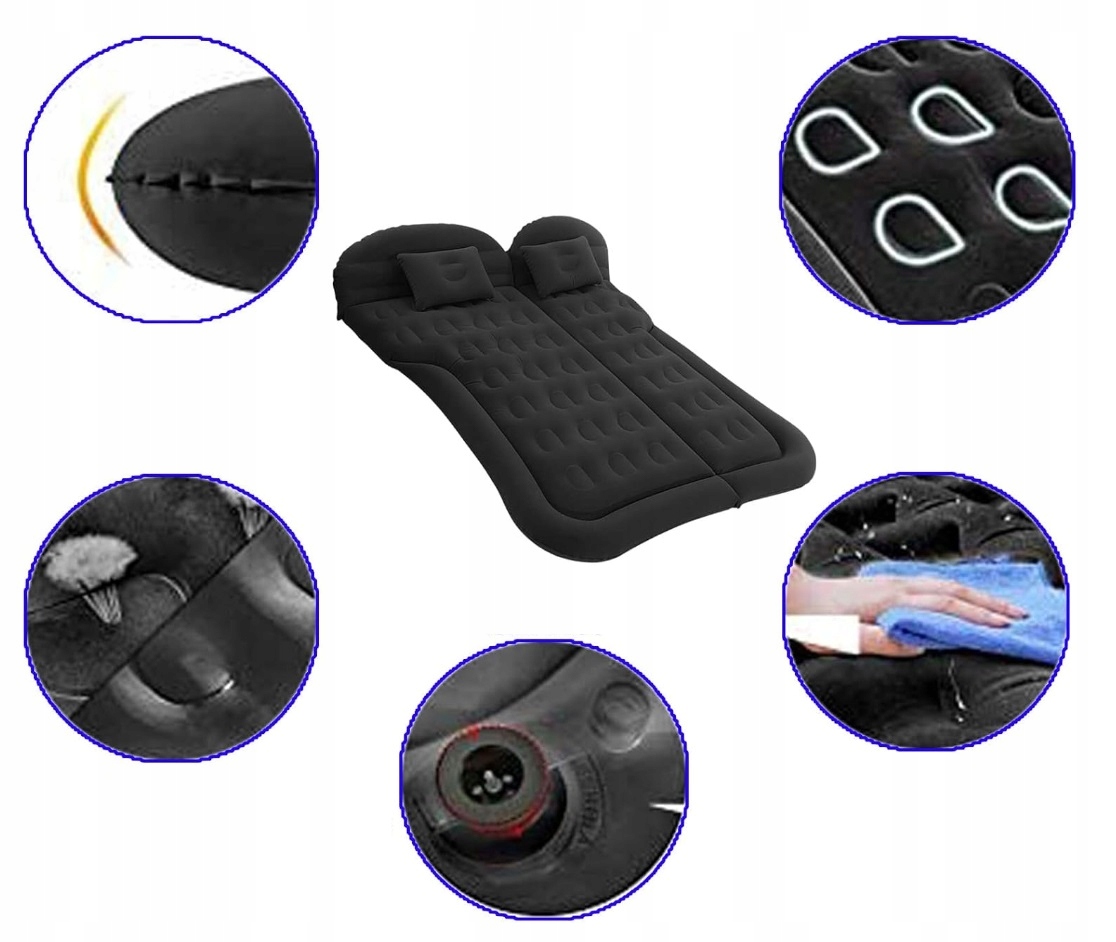 Это позволяет подготовить удобное место для сна. автомобиль и складывать его после пробуждения еще никогда не было так быстро и эффективно! Флокированная поверхность надувной кровати также очень легко чистится обычной тряпкой.