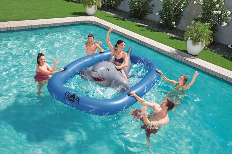 Проверьте свой баланс и ловкость! Настоящая надувная акула 310 х 213 см. АКУЛА попытается сбросить вас в воду! Свяжитесь с друзьями или семьей, чтобы гарантированно хорошо провести время с надувной акулой, боритесь за то, чтобы оставаться на надувной акуле как можно дольше. Вы сможете стать победителем! Будьте одним из первых, кто получит эту новую надувную лодку! Надувная акула состоит из 6 ручек (2 прикреплены к акуле и 4 к боковым ремням), с помощью боковых ручек ваши друзья попытаются заставить вас упасть с акулы. Держитесь крепче! Вы сможете долго наслаждаться этой замечательной игрой благодаря тому, что акула изготовлена из качественного винила и ее яркой расцветки.