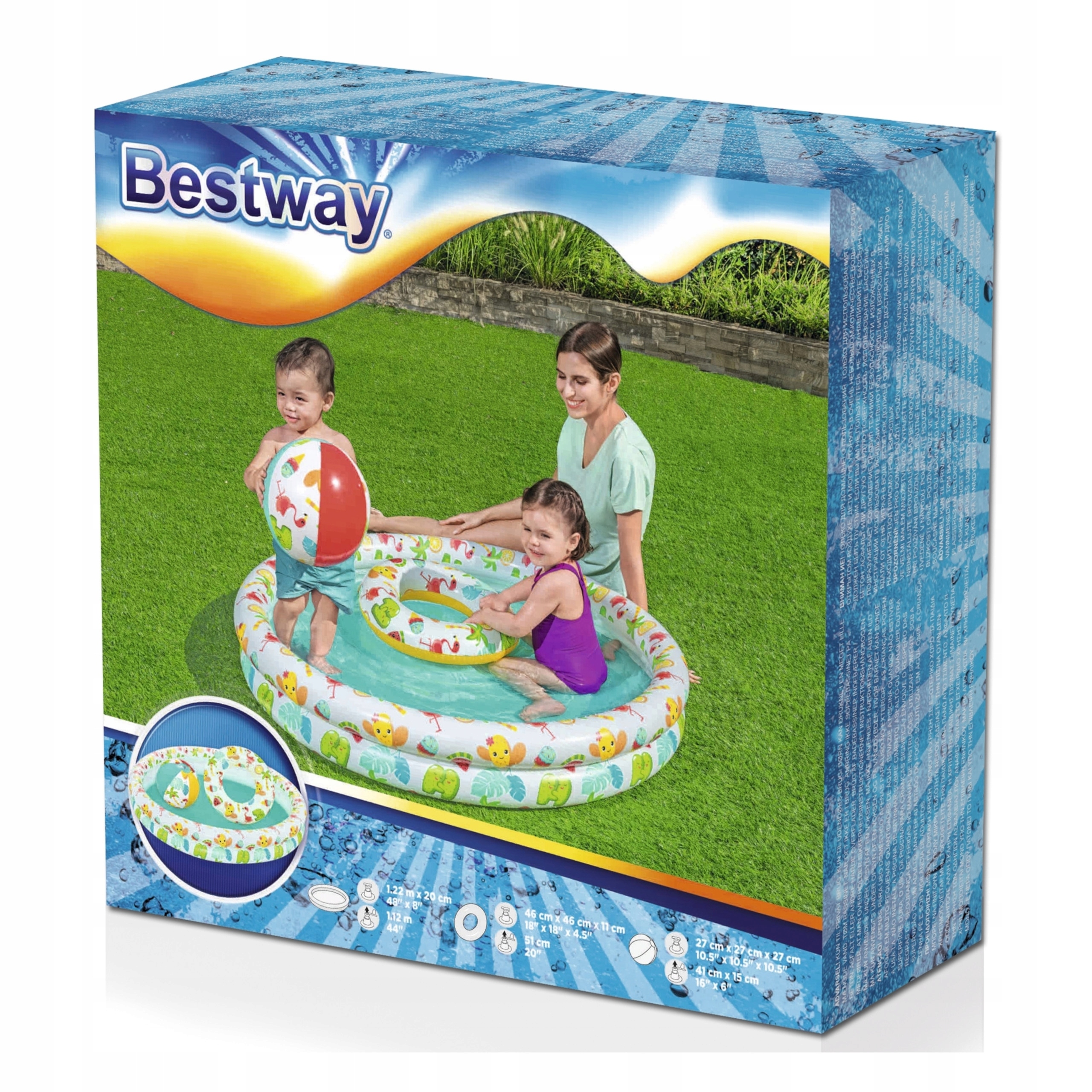Садовый надувной бассейн Bestway идеально подойдет для вашего сада или участка в жаркие дни. Фантастические яркие цвета и тропический узор привлекают внимание не только детей, но и взрослых. Бассейн изготовлен из прочного ПВХ и имеет две отдельные воздушные камеры. Дополнительно бассейн оснащен колесом и надувным мячом, которые разнообразят развлечения в воде. Идеально подходит для детей от 2 лет. Надувной бассейн — отличное решение для родителей, которые хотят весело провести время в воде в летние дни.
