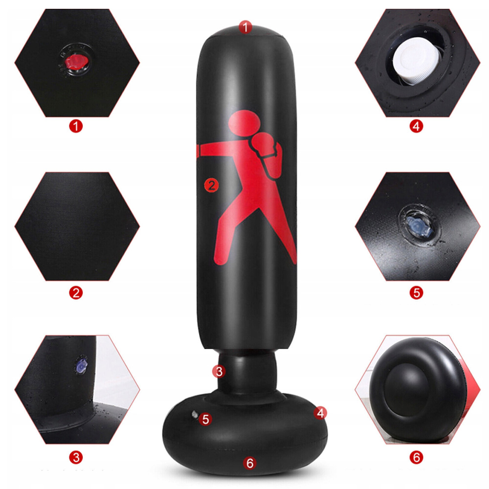 Размеры этой тяжелой боксерской груши ок. В комплект поставки .160 см входит надувная боксерская груша, размер которой подходит для взрослых, подростков и детей. Отличный подарок в качестве тренировочного инвентаря для боевых искусств или боксерского инвентаря для домашних тренировок.