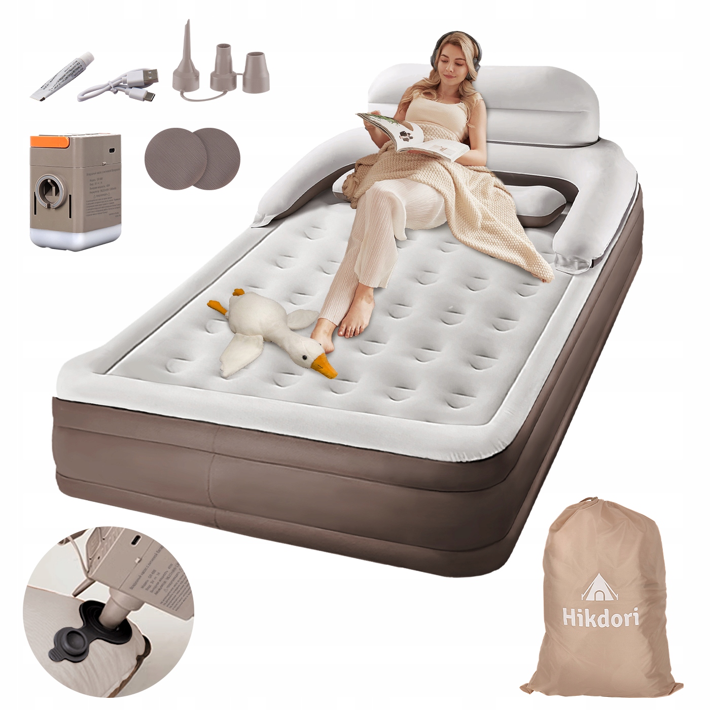 НАДУВНИЙ ОКСАМИТОВИЙ МАТРАЦ ДВОСПОЛЬНЕ ЛІЖКО З ЕЛЕКТРИЧНИМ НАДУВНИМ НАСОСОМ