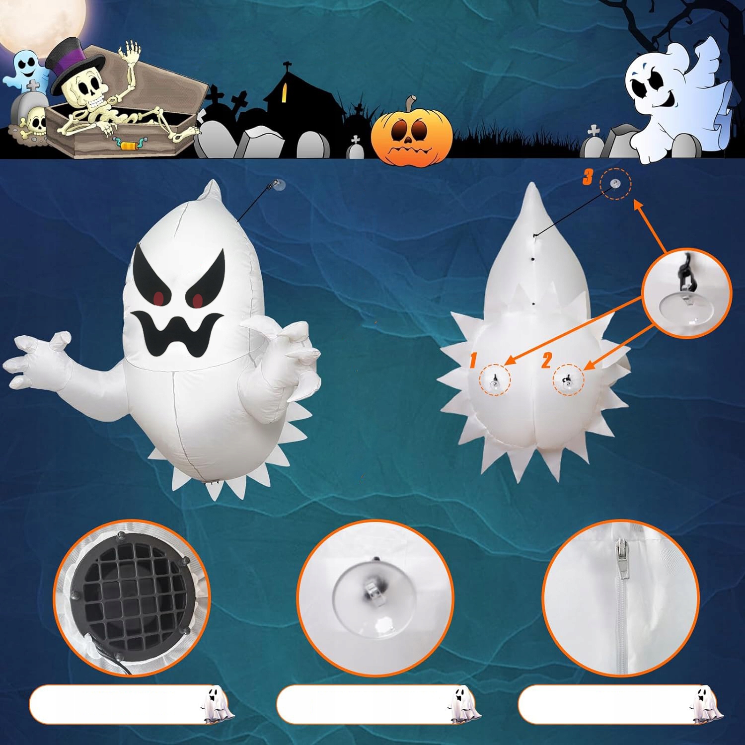 👻👻Простота использования. Установка и эксплуатация этой надувной лодки для Хэллоуина не вызывает затруднений. Просто подключите его к сети и наблюдайте, как он быстро надувается до размера 1,4 м. В комплект входят присоски и ремни для устойчивости, чтобы ваш страшный призрак надежно оставался на месте во время праздника Хэллоуин.