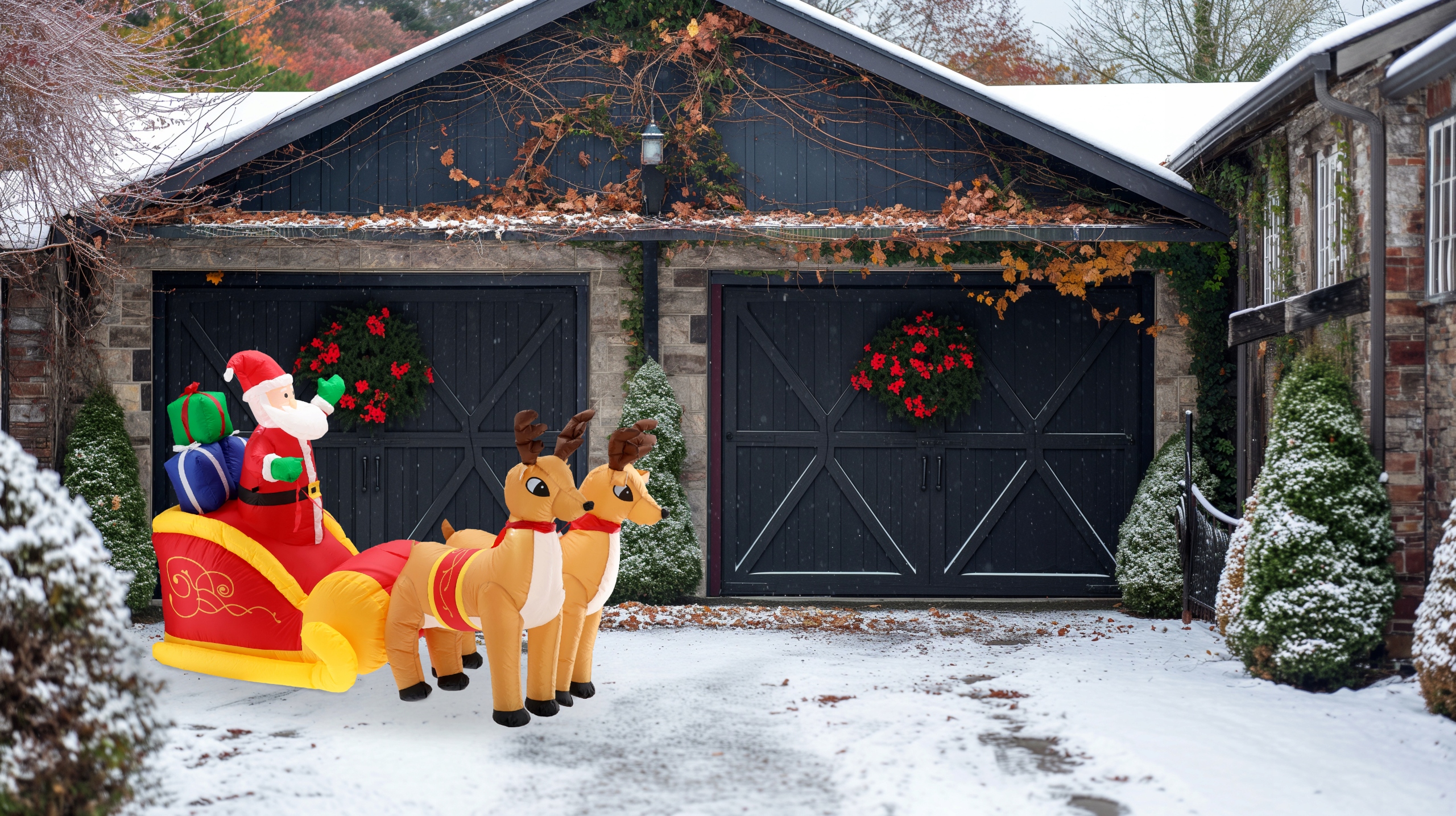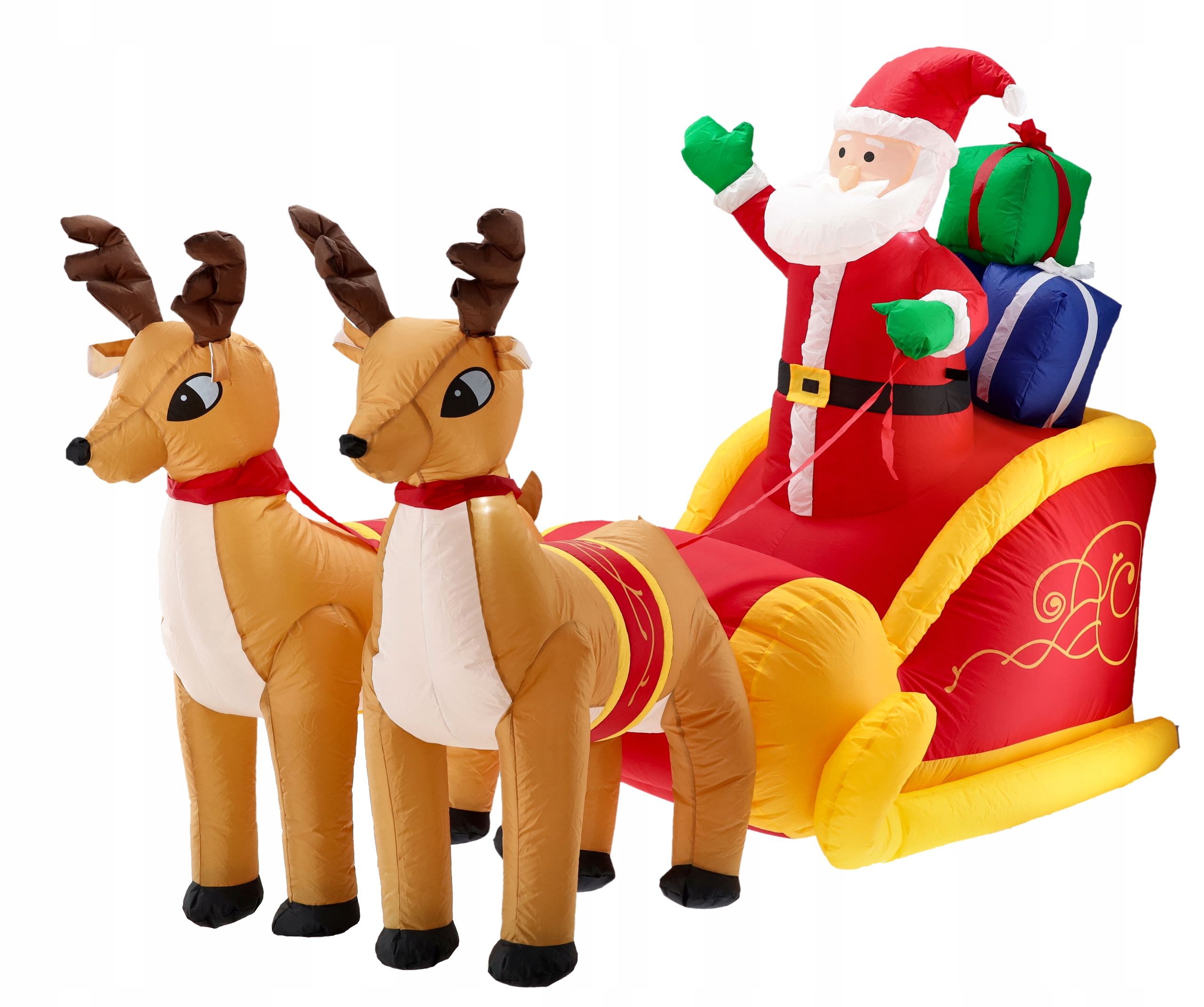 Приготовьтесь к волшебным праздникам с нашим надувным Санта -Клаусом на санях со светодиодными оленьями с впечатляющей длиной 235 см ! Это отличное украшение - идеальный способ создать праздничную атмосферу в вашем саду, на террасе или на балконе.
