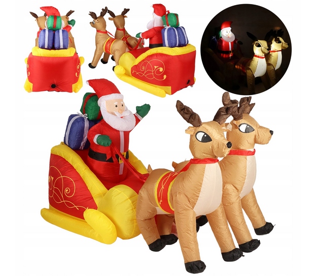 Приготовьтесь к волшебному Рождеству с нашим надувным Сантой на санях со светодиодными оленями впечатляющей длиной 235 см! Это чудесное украшение - идеальный способ создать новогоднюю атмосферу в вашем саду, на террасе или балконе.