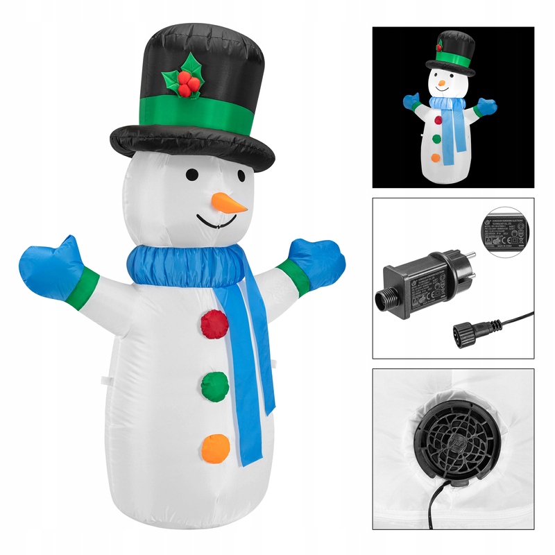 Надувной снеговик со светодиодами. Идеальное украшение к Рождеству. Этот декоративный надувной снеговик станет прекрасным освещением во время Рождества.