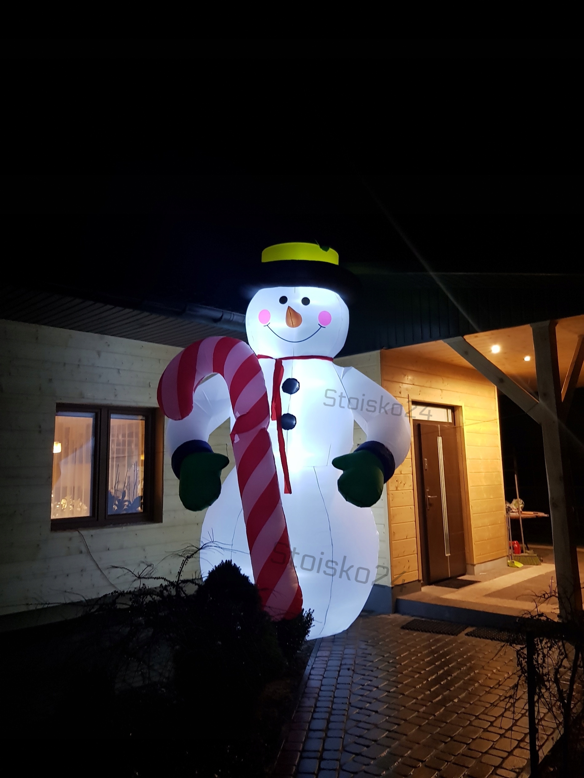 Каждый снеговик оснащен блоком питания, который снижает напряжение, протекающее в надувной фигурке, с опасных 230 вольт до совершенно безвредных для нашего организма 12 вольт