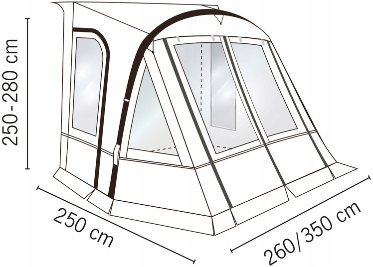 - Размеры: 260/350 x 250 x высота 250. /280 см