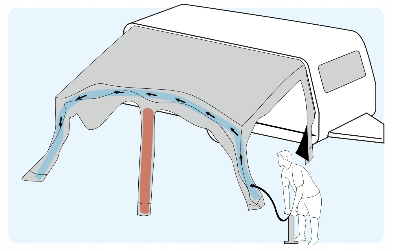 Pluto – надувной накачиваемый тамбур для автодомов, рассчитанный на быструю сборку и высокий комфорт эксплуатации. Благодаря конструкции, основанной на Advanced Air System® (AAS), ее установка выполняется быстро и легко. Тамбур по всей длине вставлен в кедровую планку прицепа, что позволяет свободно открывать окна, двери и сервисные люки и одновременно эффективно герметизирует борта прицепа от ветра и осадков.