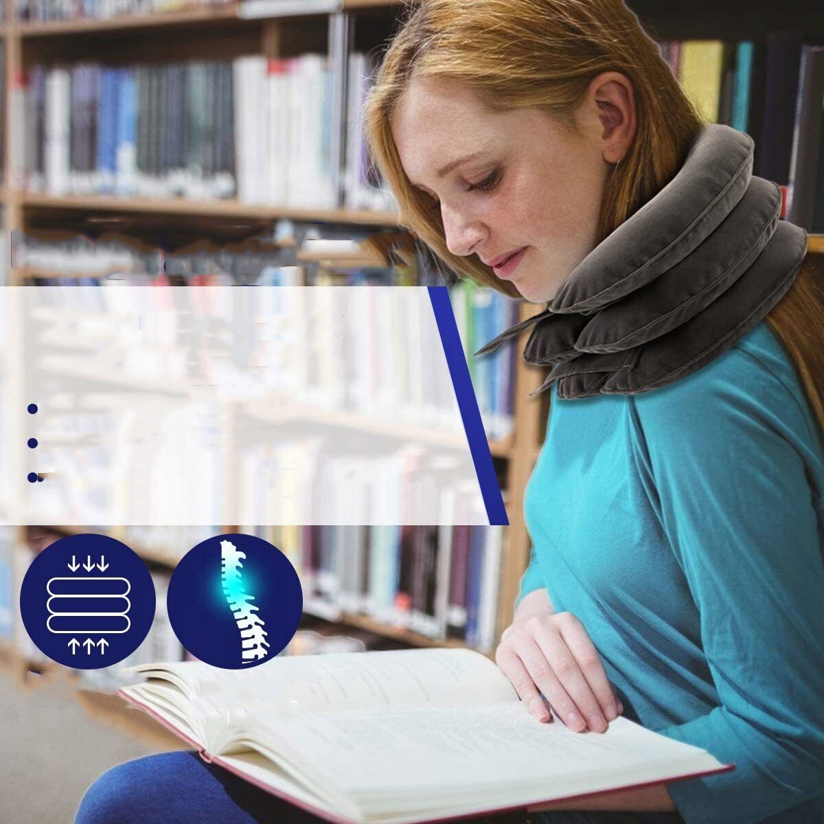 При перекачке устройство заполняется воздухом, чтобы растянуть и расслаблять мышцы шеи и увеличить кровоток и кровообращение. Пользователь контролирует скорость и давление на плечи, работая над улучшением осанки и нервного ослабления. Чтобы получить начальные результаты, мы рекомендуем использовать устройство 2-3 раза в день в течение 20-30 минут для сеанса.