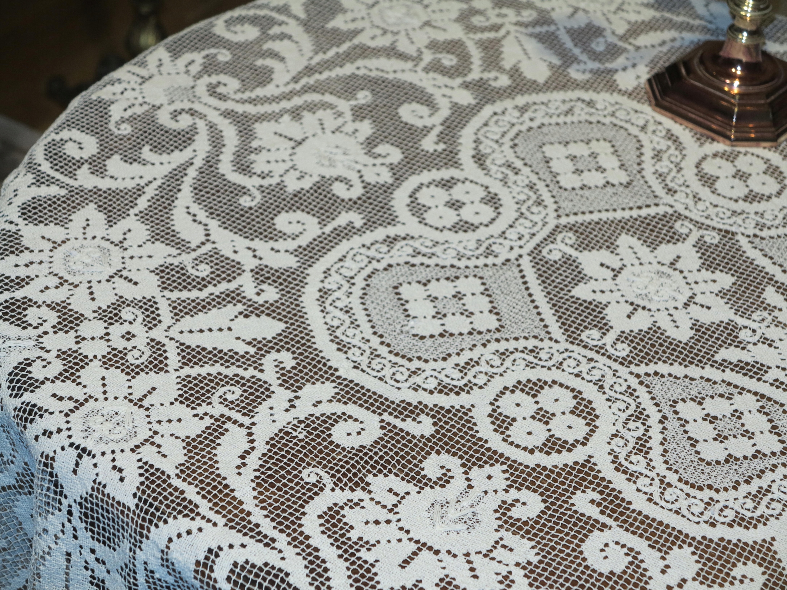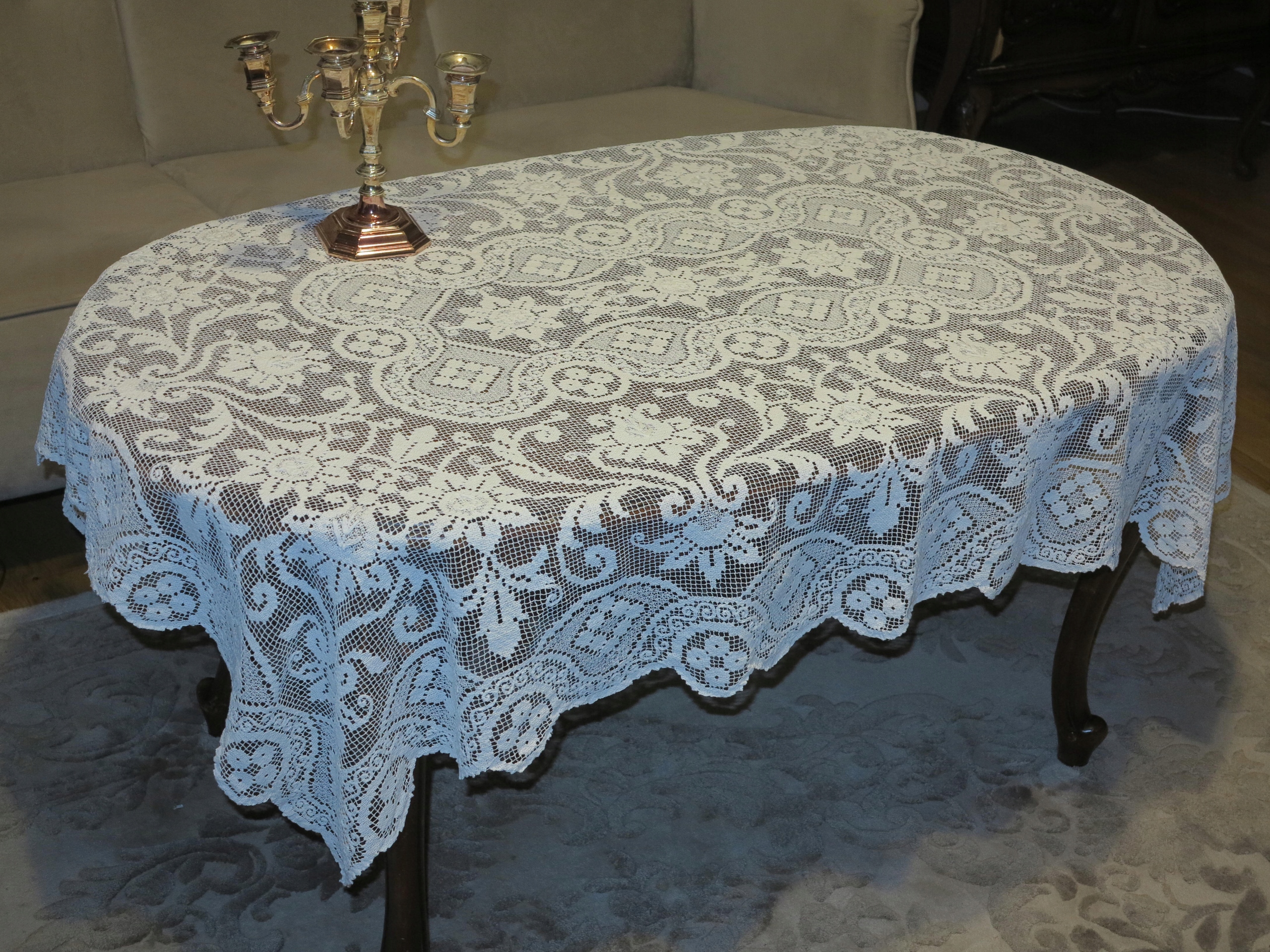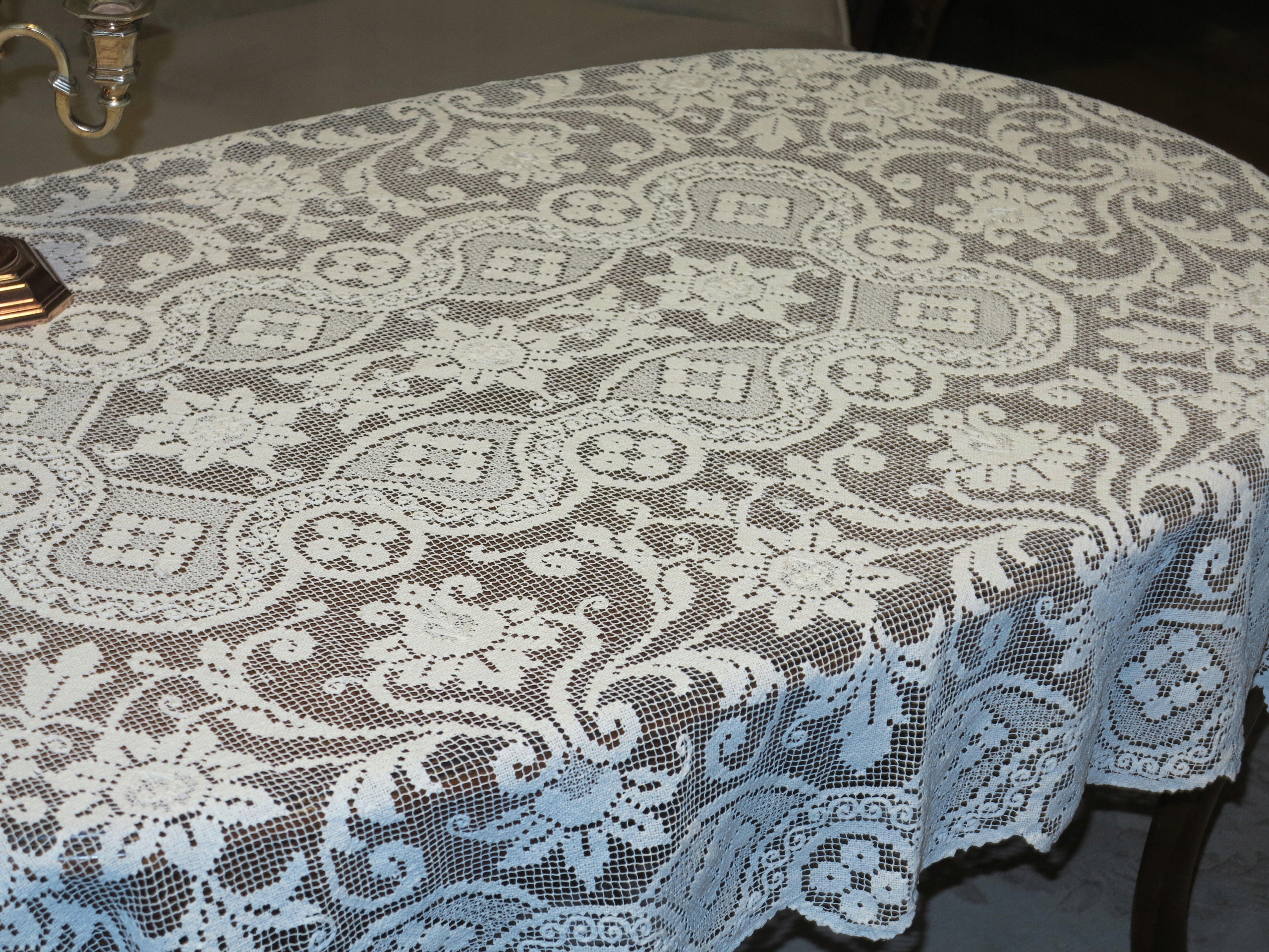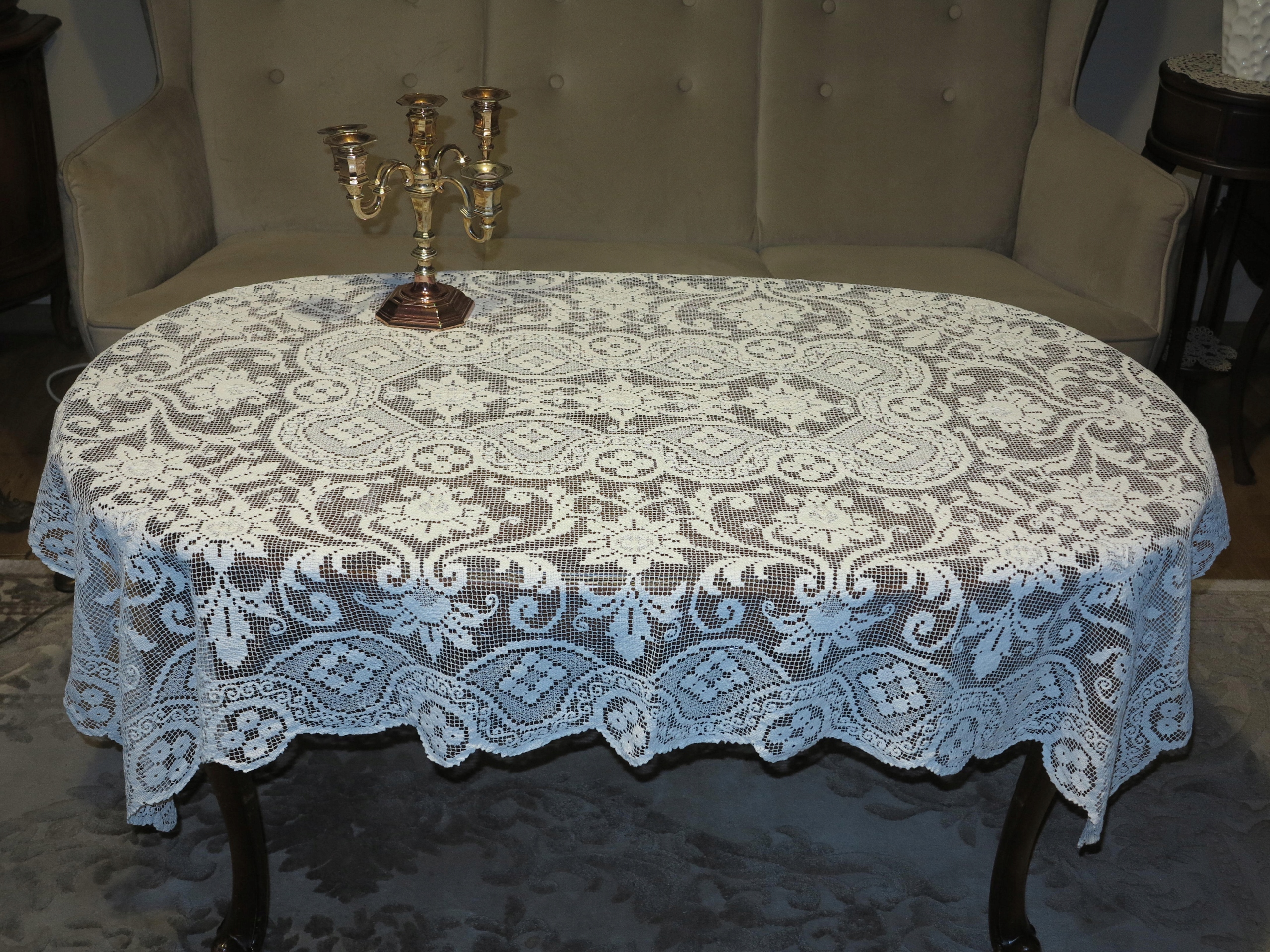 Предмет аукциона – исключительно красивая скатерть-колышек со стильным узором. Красиво смотрится на столе. Б/у, но в отличном состоянии