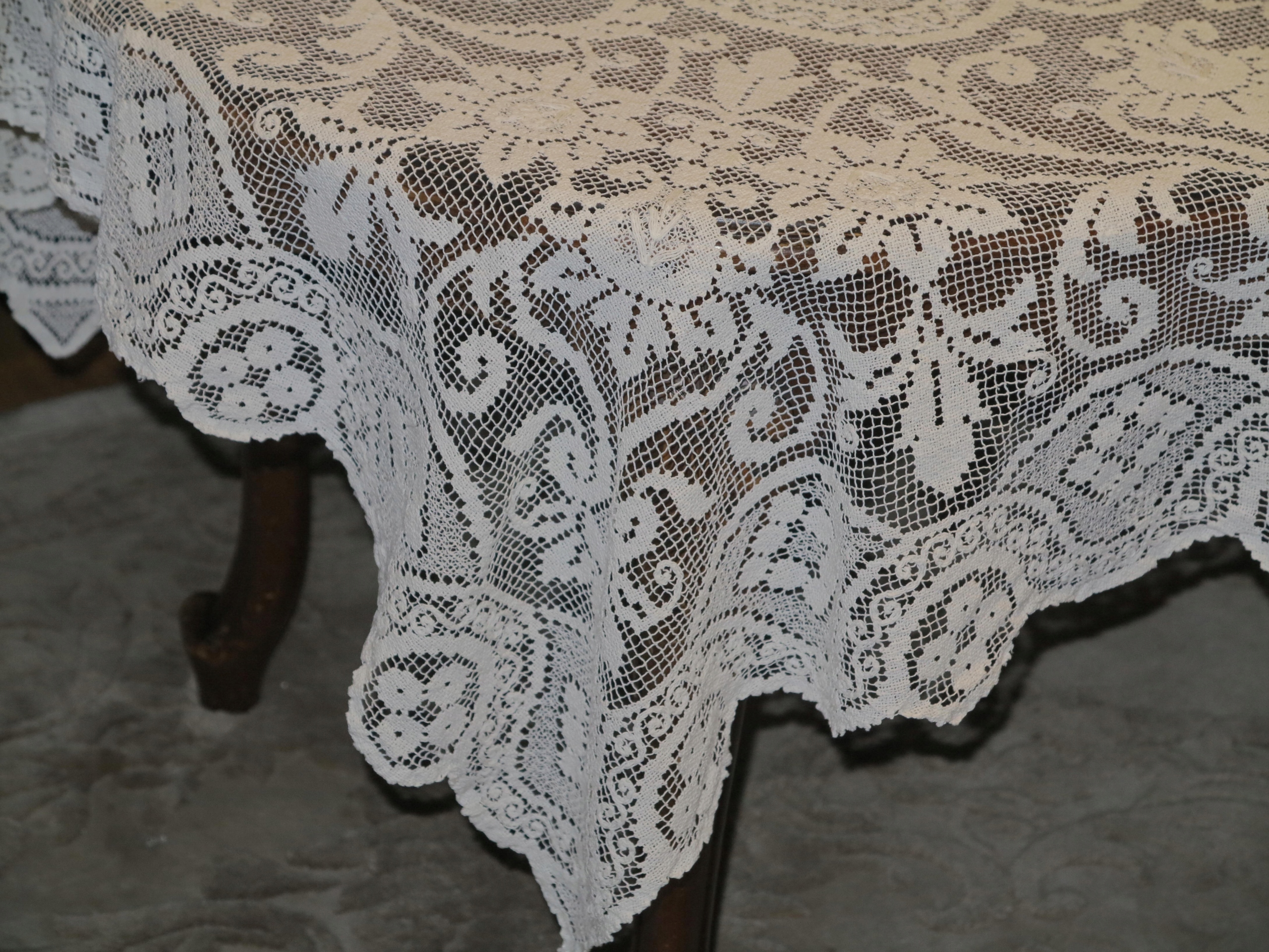 ОЧЕНЬ КРАСИВУЮ БЕЛУЮ СКАТЕРТЬ-ПИНЬКУ, СО СТИЛЬНЫМ, ОЧЕНЬ ДЕКОРАТИВНЫМ УЗОРОМ. О