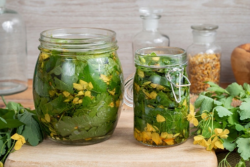 Мацератное масло из шин. Коллекция Челандея на нашей ферме. Ручная трава. Продукт ручной работы. p>