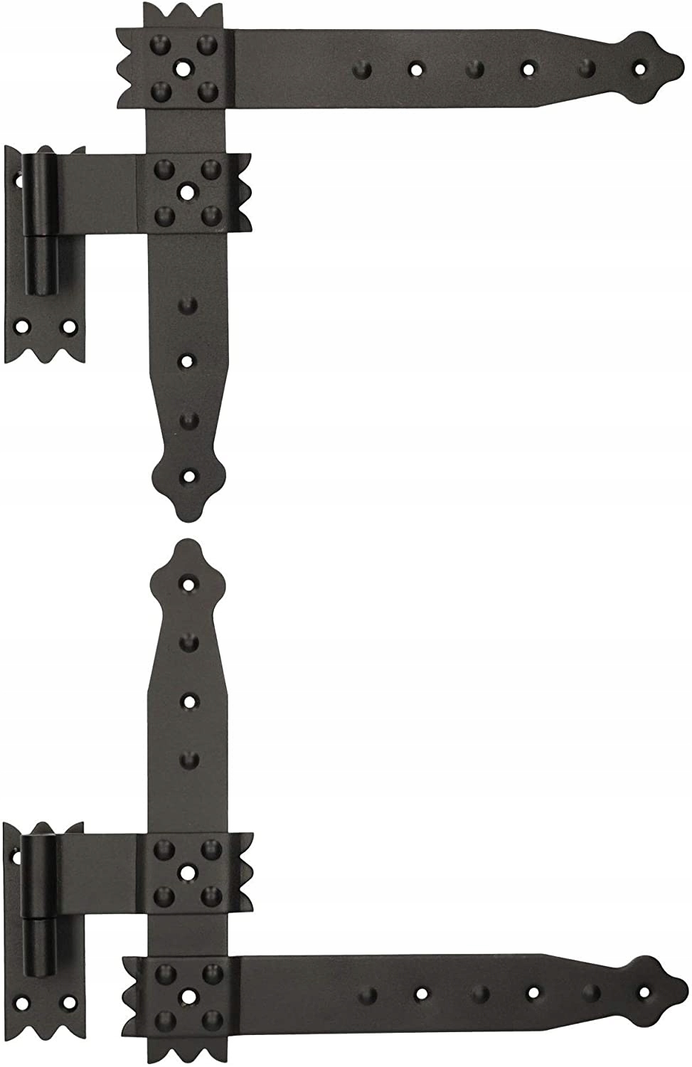 В предложении 4 угловые петли с 4 монтажными крючками. Эти 8 элементов создают функциональный комплект в горном стиле. Петля подходит для установки в дерево, металл или кирпич. Обеспечивает плавное движение створок при их закрытии и открытии.