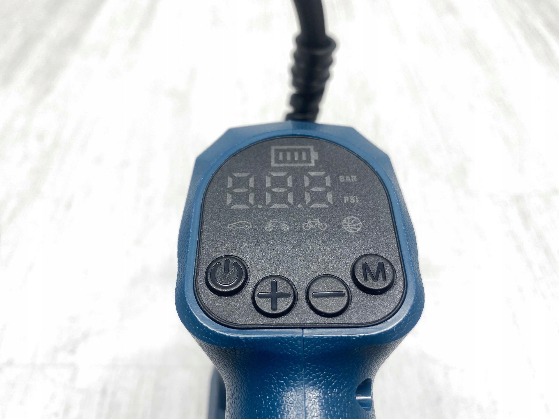Компрессор имеет 4 режима накачки и 2 выбираемых единицы измерения (PSI, BAR). Просто используйте кнопки «+» и «-», чтобы установить желаемое давление. Как только желаемое значение будет достигнуто, насос автоматически отключится.