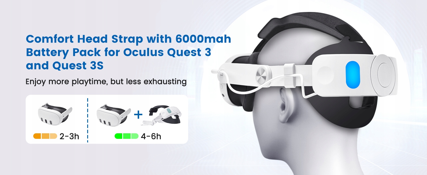🎮 БОЛЬШЕ ВРЕМЕНИ ИГРЫ: Аккумуляторная батарея емкостью 6000MHA на задней части головной ловушки продлевает дополнительное время работы в виртуальной реальности примерно на 2–3 часа, увеличивая время игры. Оснащен светодиодным дисплеем мощности от 1% до 100% над уровнем заряда батареи, что позволяет точно отслеживать оставшийся уровень заряда батареи.