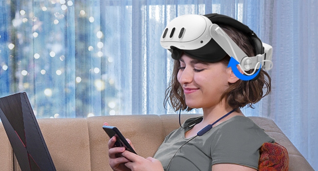 🎮 БАЛАНС ВЕСА: Ремешок на голову с аккумулятором для Meta quest 3/quest 3S имеет гравитационно-сбалансированную и шахматную конструкцию, которая более равномерно распределяет вес на голове, устраняет давление на лицо и голову. Обеспечивает вам комфорт и удовольствие от виртуальной реальности.